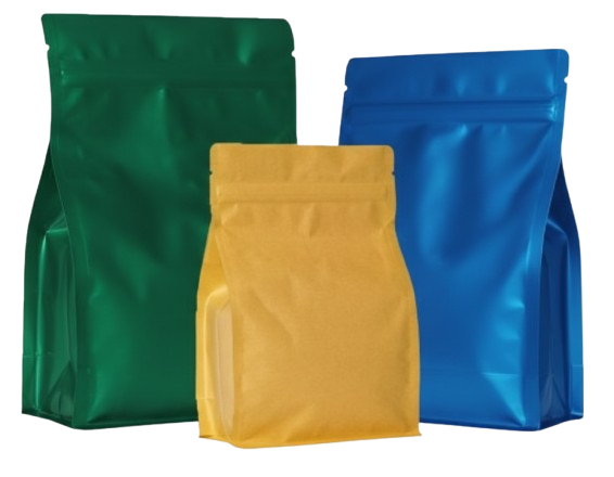 | Quad Seal & Side Gusset Pouches | Strong structure with expanded capacity for heavy products | Coffee beans, pet food, bulk powders, grains |